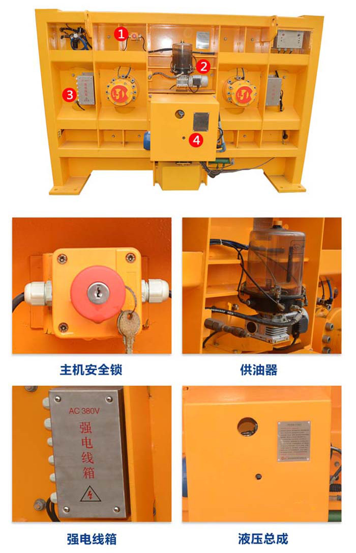 JS2000攪拌機的上料系統由卷揚機構、上料架、料斗、進料嘴等部分組成。